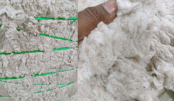 The fiber is fluffed and opened using a willow machine to regain volume and softness. After Processed and cleaned, it is used in mop yarn /2s and 4s count yarn , bedding and pillow filling .